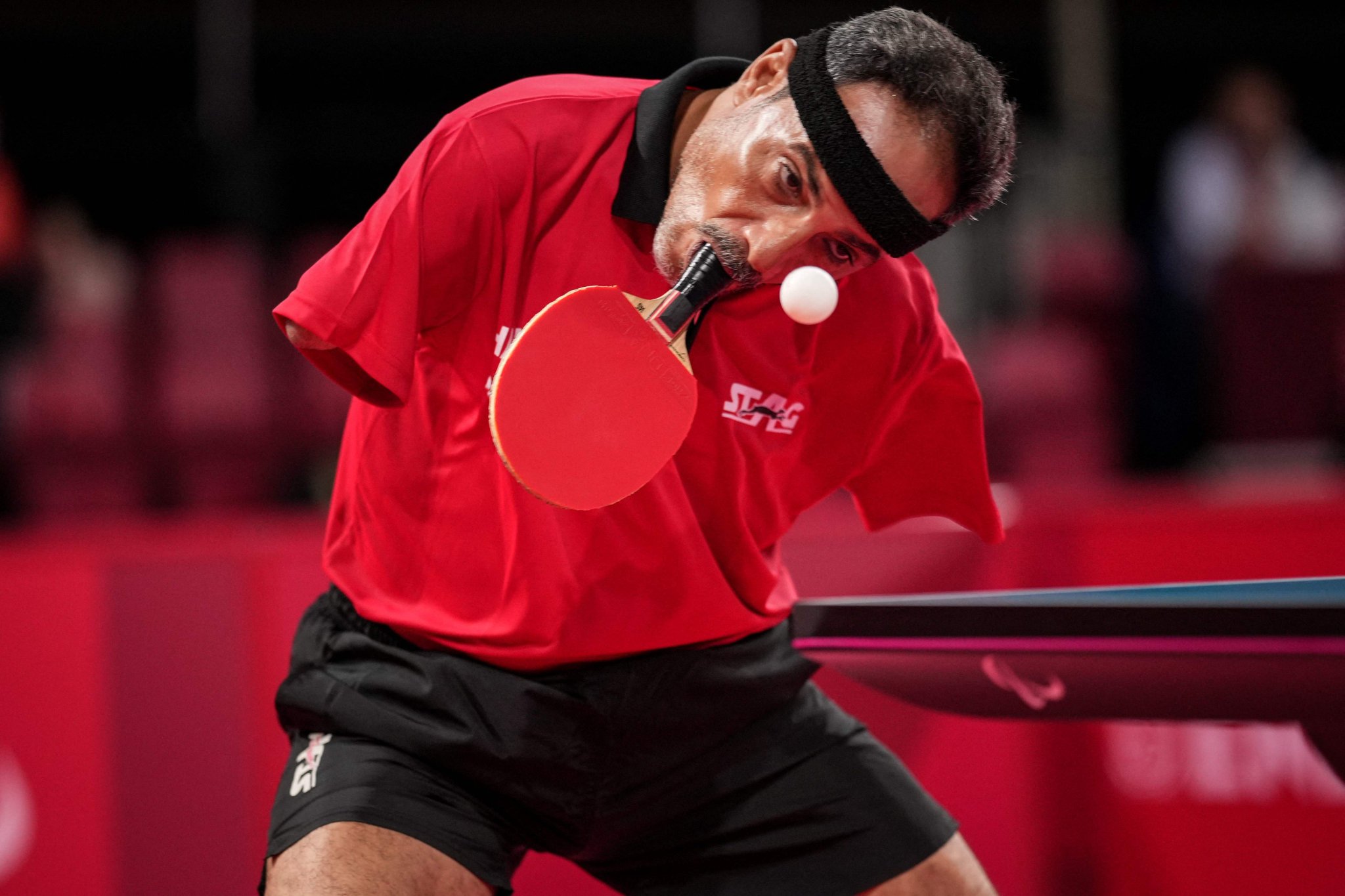 أبهر المصري إبراهيم حمدتو، العالم، بلعبه تنس الطاولة باستخدام قدمه وفمه خلال مشاركته في دورة الألعاب البارالمبية طوكيو 2020.